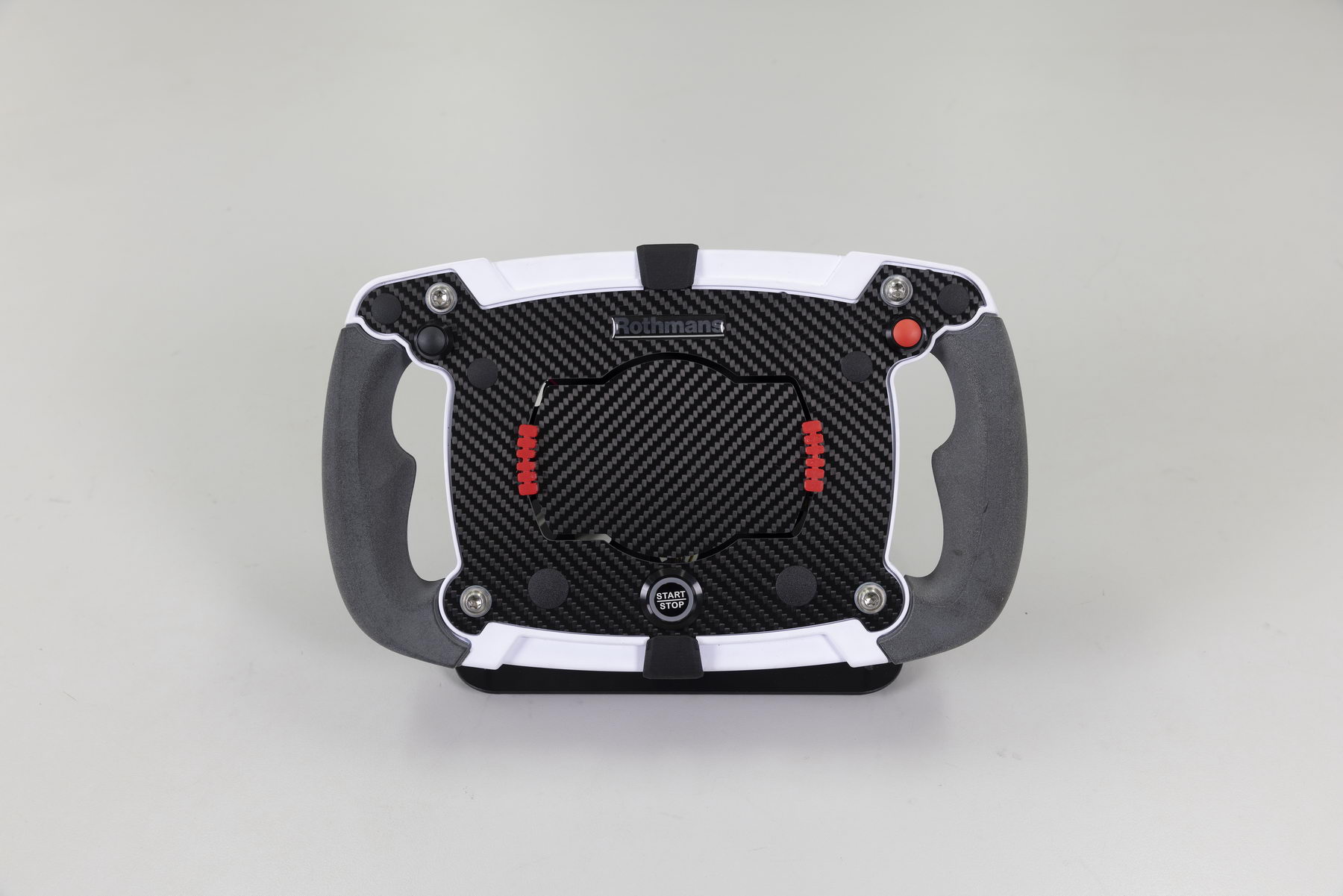 Es el volante multifunción de Rothmans adaptable a cuadriciclos ligeros Ligier JS 50. Características: Empuñaduras ergonómicas antideslizantes y lavables MRSpro Cubierta frontal de fibra de carbono con diseño personalizable Ø322 x 185mm (ancho x alto) (*): Las empuñaduras MRS-Pro se fabrican con un material antiestático específicamente formulado por Rothmans, con propiedades personalizadas entre caucho, plástico y el cuero sintético o “Alcántara”. Los puños MRS-Pro presentan una alta resistencia a la abrasión, a los productos químicos / antimicrobianos / hongos y a los rayos UV, a la vez que proporcionan una gran comodidad y agarre incluso en sesiones de carreras bajo la lluvia Opciones: Pulsadores momentáneos (colores disponibles: negro, azul, rojo o amarillo) Interruptores rotativos (2 posiciones y/o 3 posiciones) Cronómetro/Lap-Timer NO INCLUIDO (se vende por separado)